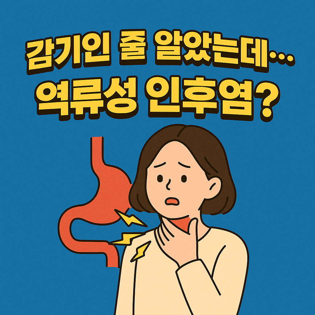 역류성 인후염은 위산이나 음식물이 역류하면서 목 점막을 자극해 생기는 인후염입니다. 특이하게도 식도나 위가 아프기보다, 아침에 일어나면 목이 타들어가는 듯하거나 쉰소리가 나며 시작됩니다. 목에 가래가 낀 듯한 느낌이 계속 들고, 삼키는 게 답답하며 계속 목을 가다듬게 되는 증상이 대표적이에요.