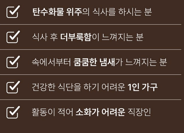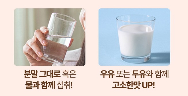 - 식후 섭취: 소화가 잘 안 되는 경우엔 식후 30분 뒤에 섭취하세요.