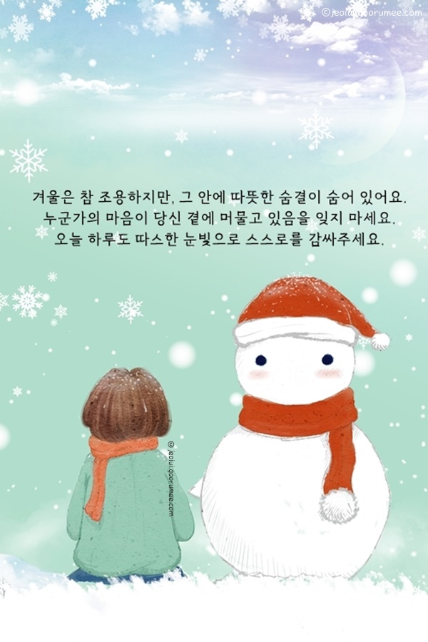 따스함이 유난히 그리워지는 계절입니다. 작은 미소 하나, 짧은 안부 한마디가 생각보다 오래 마음을 데워주더라고요. 12월은 무리하지 말고 컨디션부터 잘 챙기면서 보내셨으면 합니다. 연말연시에는 기쁨이 더 자주 찾아오고, 몸과 마음이 한결 편안하길 응원합니다.
